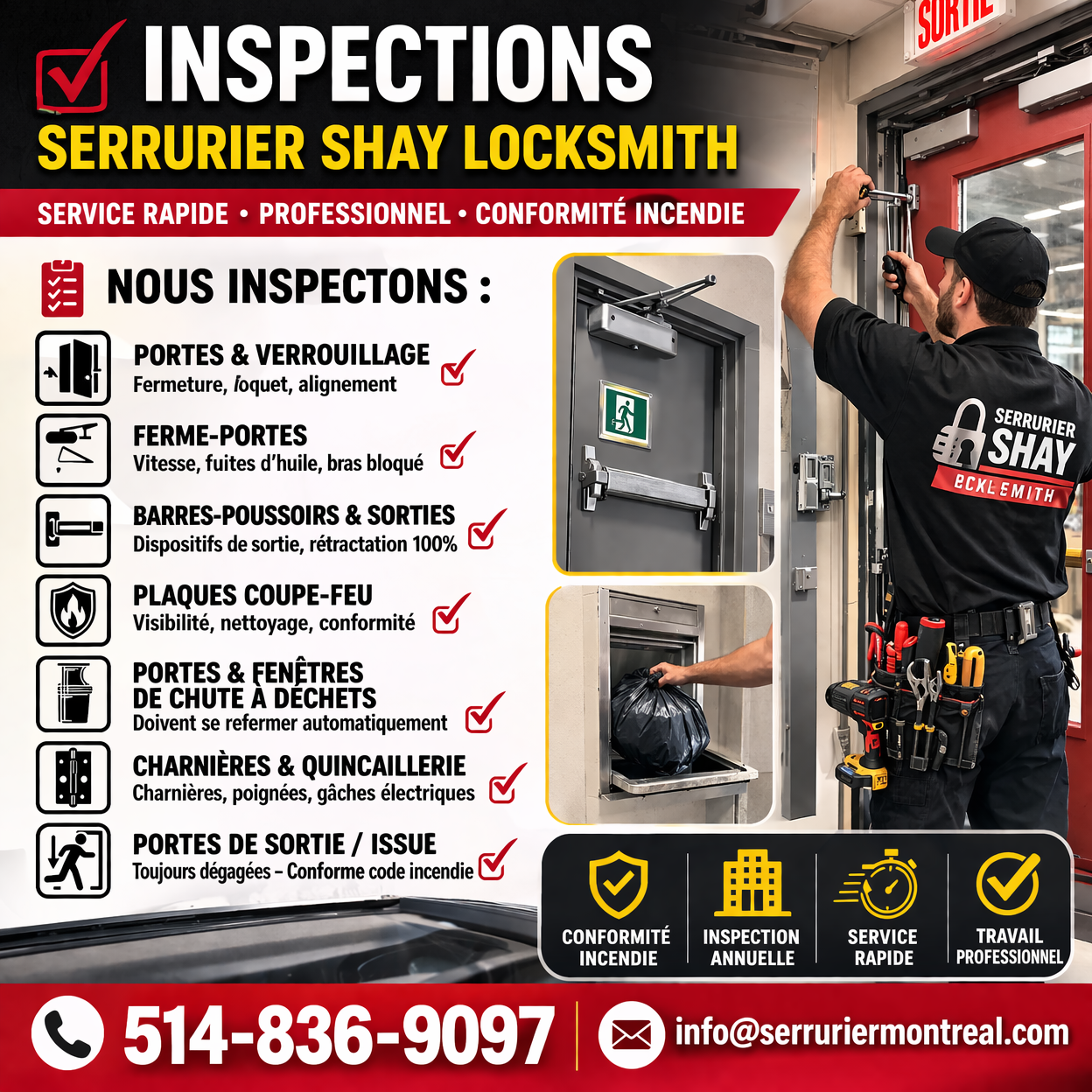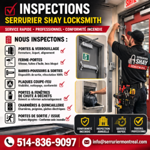 Assurez-vous que votre bâtiment est entièrement sécurisé et conforme avec Serrurier Shay, votre expert en serrurerie et portes coupe-feu à Montréal depuis 2007 🏢.